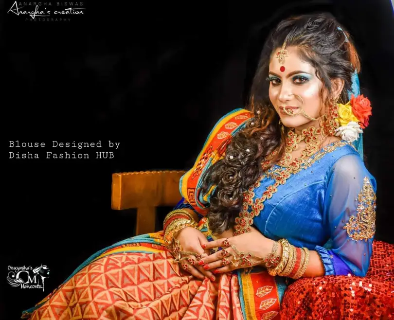 Embroidery or beadwork placed carefully can highlight certain areas. For example, placing them around the neckline or sleeves can make you look fuller yet still slender and elegant. Delicate zardozi work or sequin patterns on the bodice can add volume, making your blouse look more interesting.