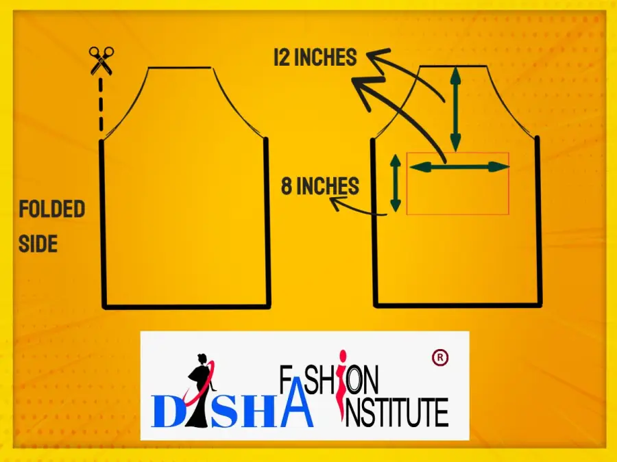 Mark the length from top to bottom as per the length you have measured while doing the body measurement. Here we are taking 27 inches in length. You can take the length as per your requirement. Make a horizontal line on the mark as shown in the figure.
