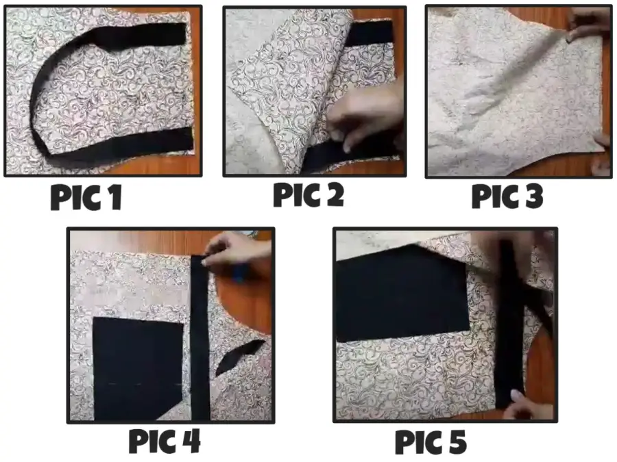 Make the pocket with a different color fabric. We would suggest taking a complementary color fabric. Take the fabric of the pocket with 12 inches in length by 8 inches in breadth. Place the fabric at the center of one of the cut pieces you have got in the previous step. Measure 12 inches from the midpoint of the top of the cut piece and place the pocket at the end of 12 inches. Check the above picture to understand the placement of the pocket.