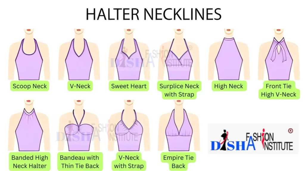 A halter neckline is a stylish and elegant choice that offers a dramatic and eye-catching look. It features a strap or band that wraps around the neck, leaving the shoulders and upper back bare.