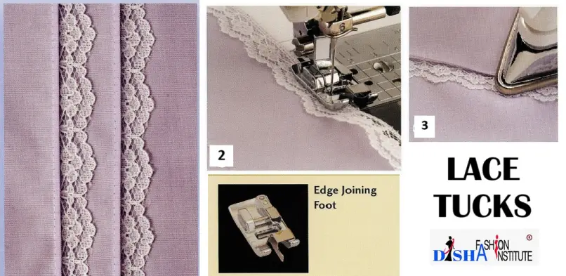 It is always beneficial to use an Edge Joining Foot to sew lace-added tucks.